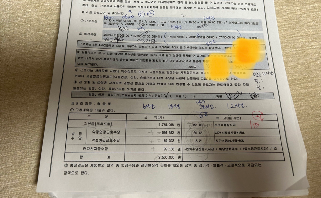 아니먼 연장근로시간 야간근로시간 포함한 195시간인지