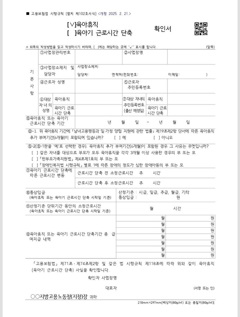 네 질문자님이 올려주신 육아휴직 확인서를 작성하여 온라인에 등록해주시면 됩니다. 감사합니다.