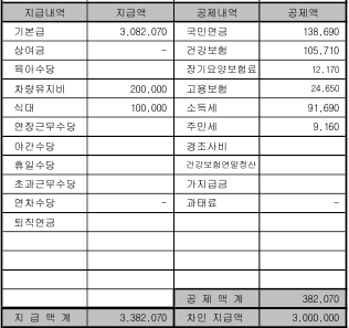 차량 유지비 : 200,000(비과세) 실제 지급받는 금액 아님