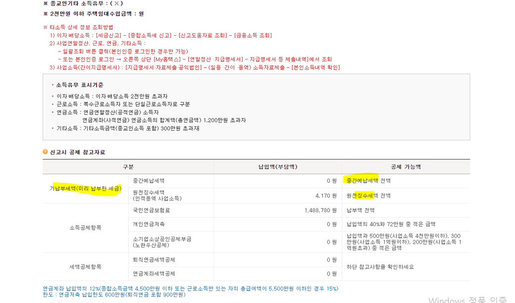 종합소득세 신고안내문 자료에서 기납부세액에서요