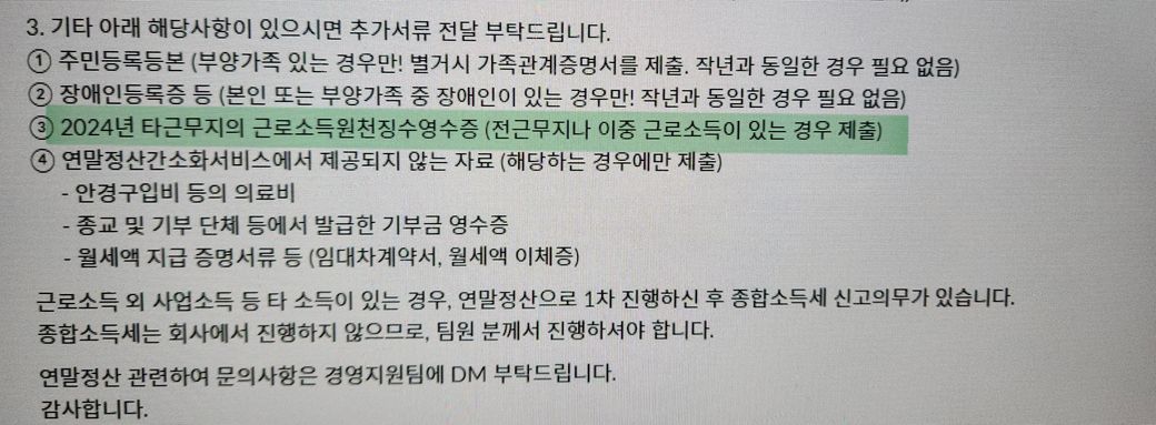 회사에서 연말정산에 필요한 2024년도 원천징수영수증을 달라고 합니다.