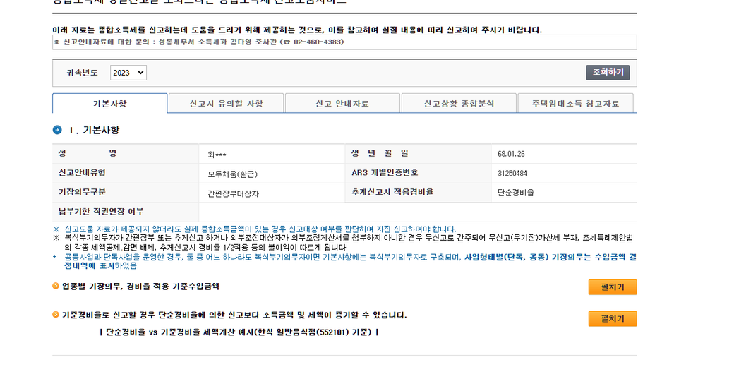 모두채움 종합소득세 대상자 단순경비율반영한다는말