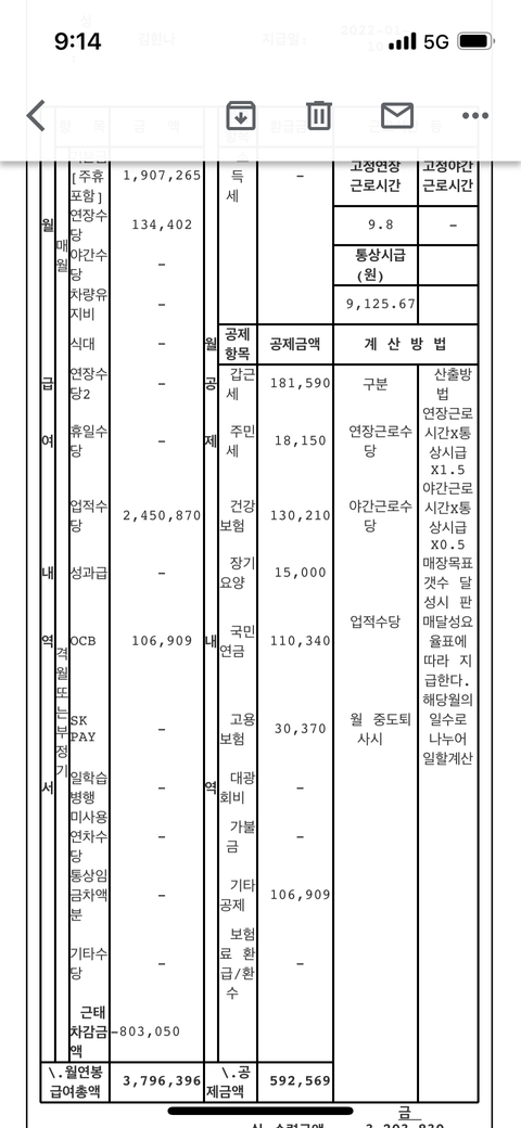 1월 근무급여는 아직 미지급되었으며 대략 50만원정도 기본급만 들어올예정입니다