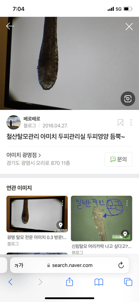 모근 그대로 곤봉모양으로 빠지는머리카락 왜그런가요?