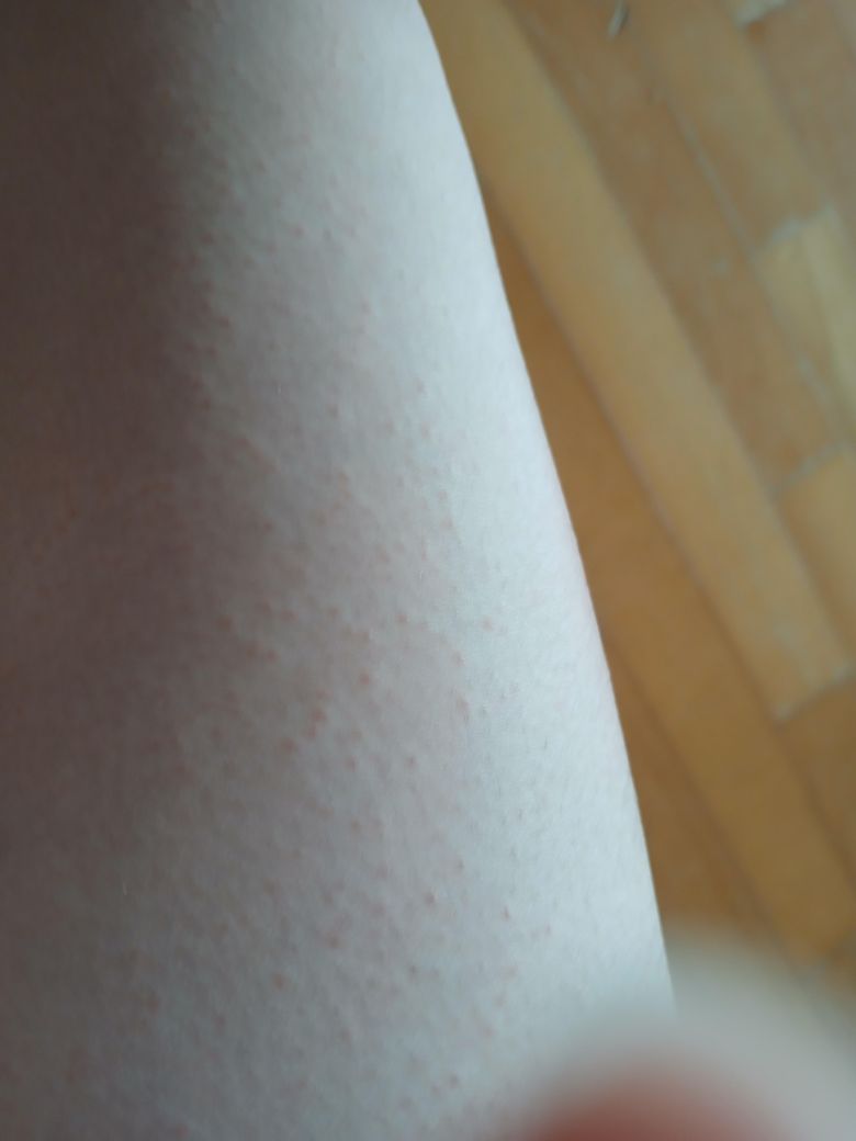 제 다리 사진인데 보시는것처럼 빨갛기도 하고 올록볼록한 두드러기가 생겼어요 팔에도 생겻구요..왜 이런걸까요???????