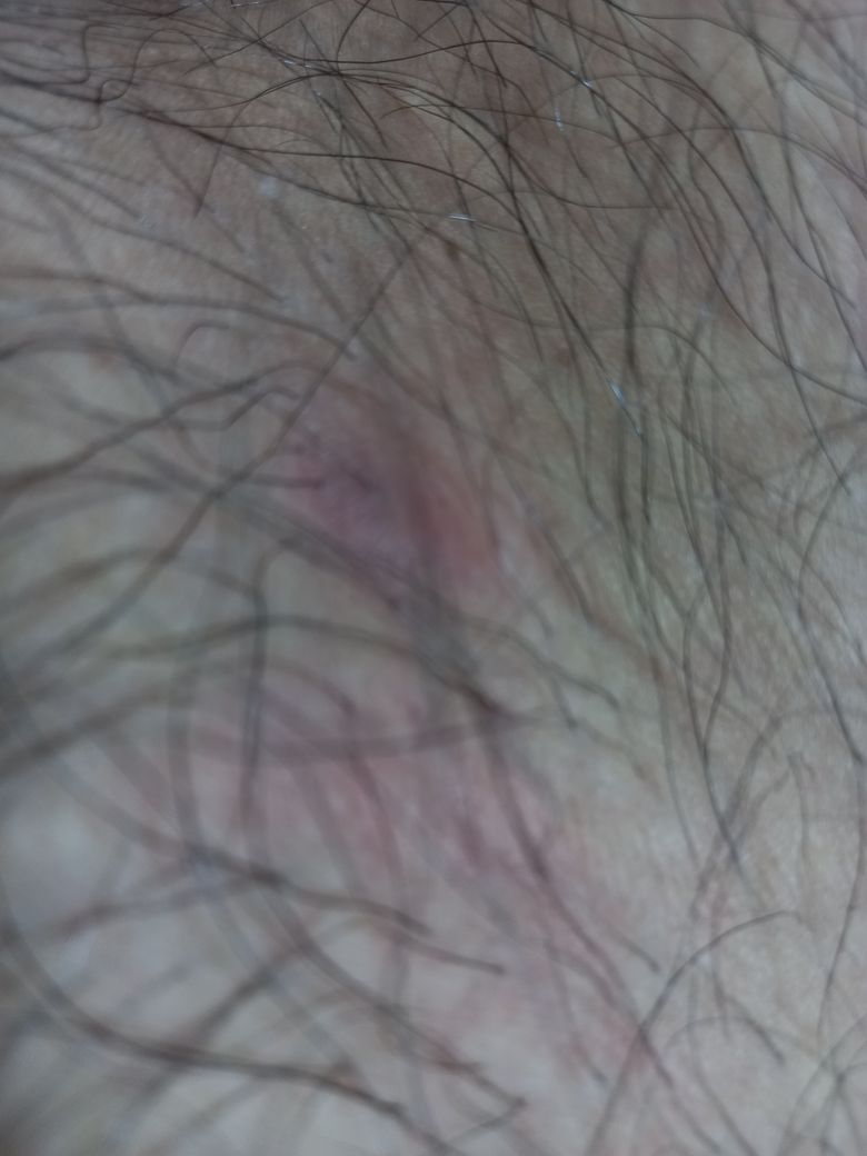 씻던 중에 사타구니에 사진처럼 빨갛게 올라온 게 딱딱하게 만져져서 보니 사진처럼 되어 있습니다.