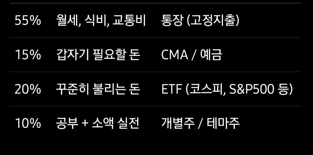 주식이나 투자를 조금씩 하고 있는데 다른 분들은 월급에 몇 % 정도 하는지 궁금하더라고요. 주식이나 펀드 같은 투자 월급의 몇 % 정도 하시나요?