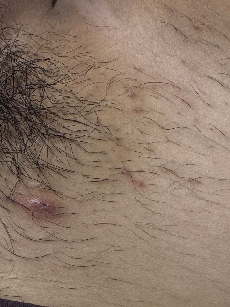 큰 여드름 같은거는 누르면 아프진 않고 고름?같은거만 나오고 옆에 검은 점들은 털뽑고나서부터 생겼는데 성병 가능성 있을까요??