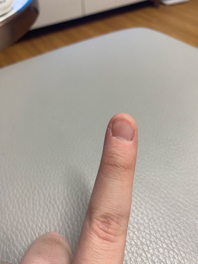 손톱 길이는 이 정도이고 이 손가락입니다.