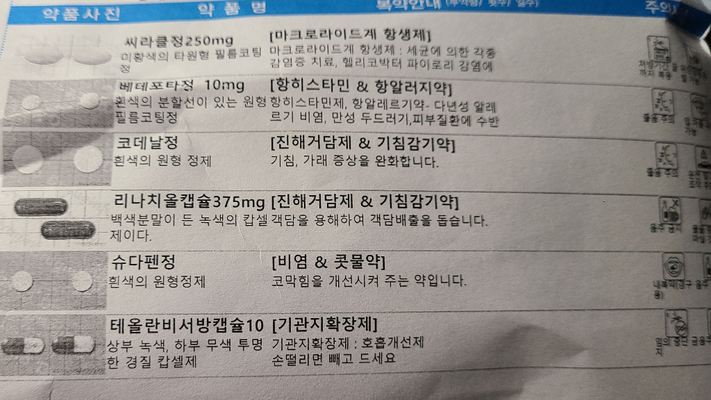 그래서 비염약과 기관지확장제 주셨어요