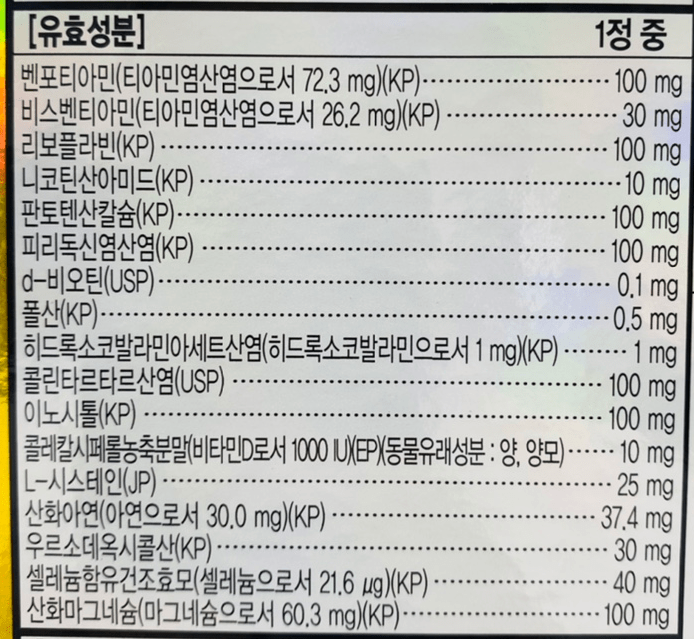 비타민B는 체내에서 쉽게 배설되기는 하나, 장기간 고함량으로 복용 시 신장에 무리가 갈 수 있으니 주의해야 합니다