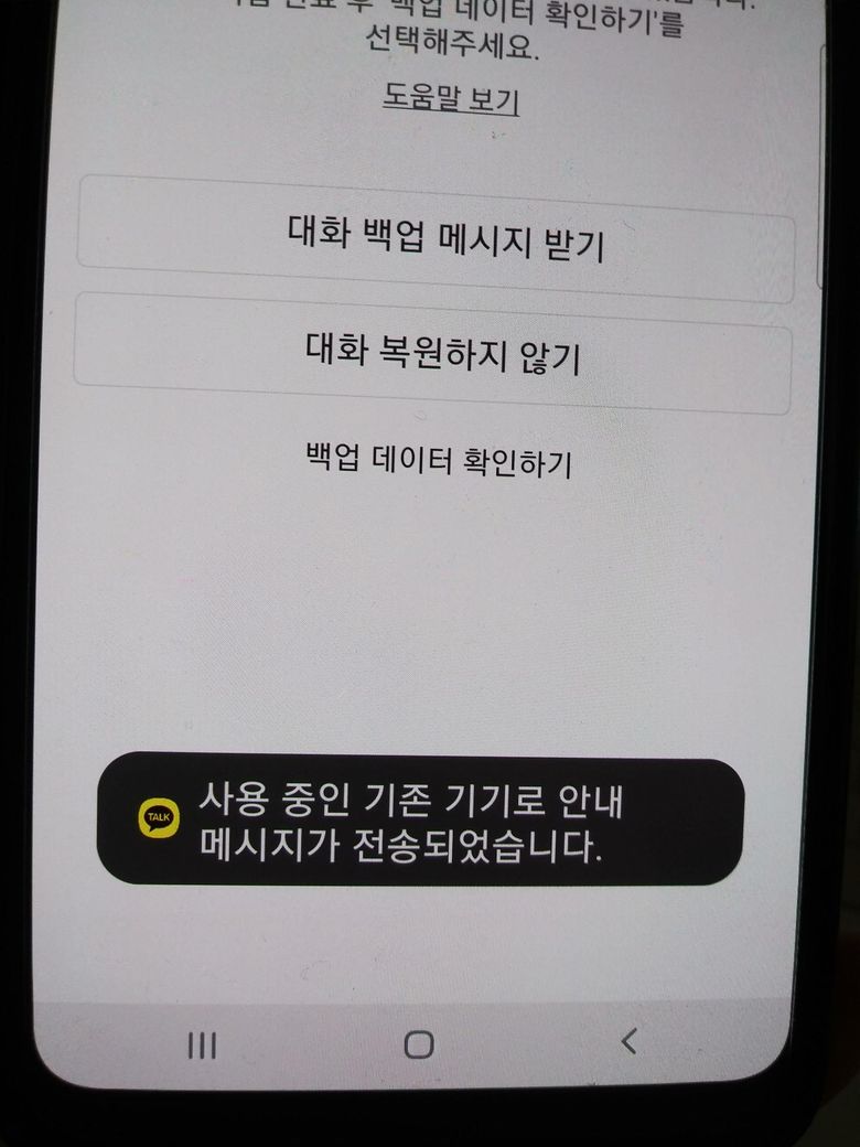 첫번째 사진은 대화백업메세지받기 누른상태사진 찍어논거고