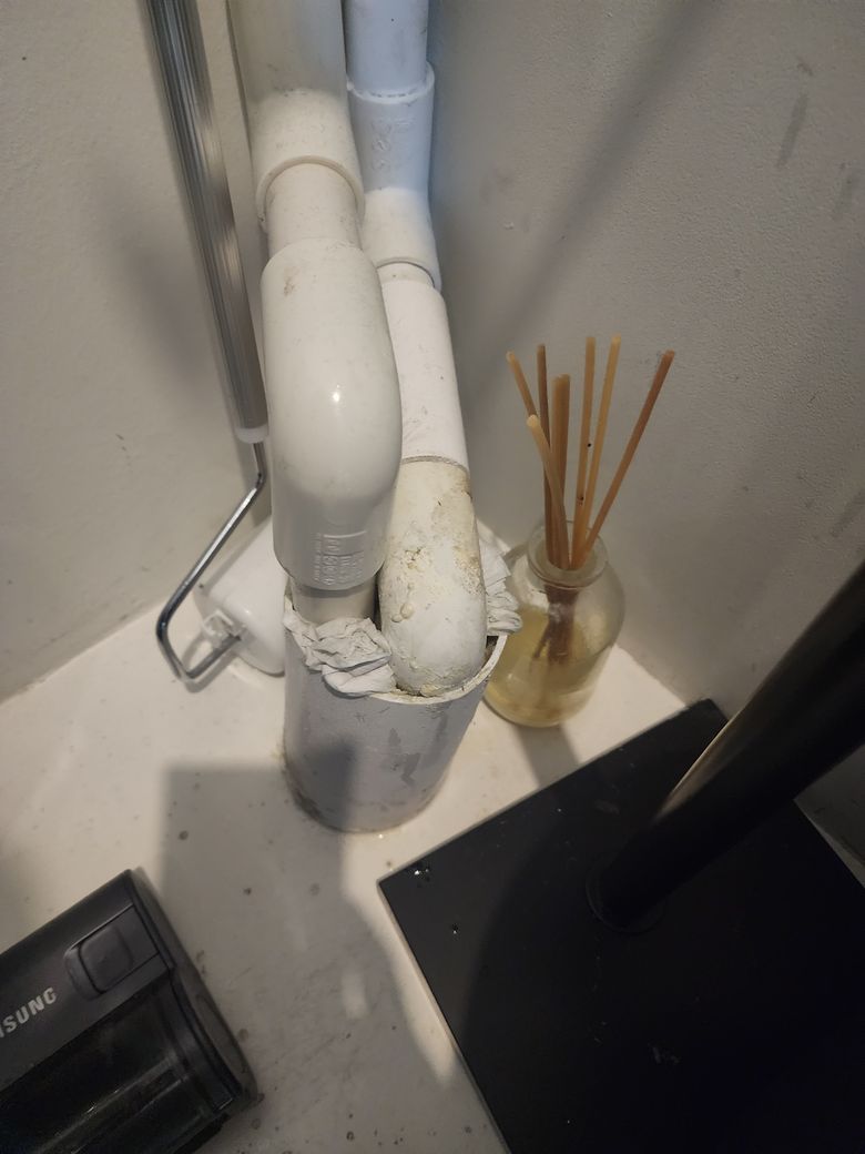 사진에 보이는 바와 같이 휴지로 빈틈을 막았지만 하수구 냄새가 계속 올라옵니다 ㅠ