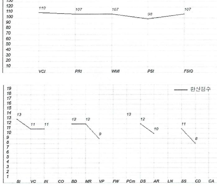 보통은 편차있게나오고 처리속도가 낮거나 언어 사회성부분이 낮게 나오는 특성으로 알고있거든요.