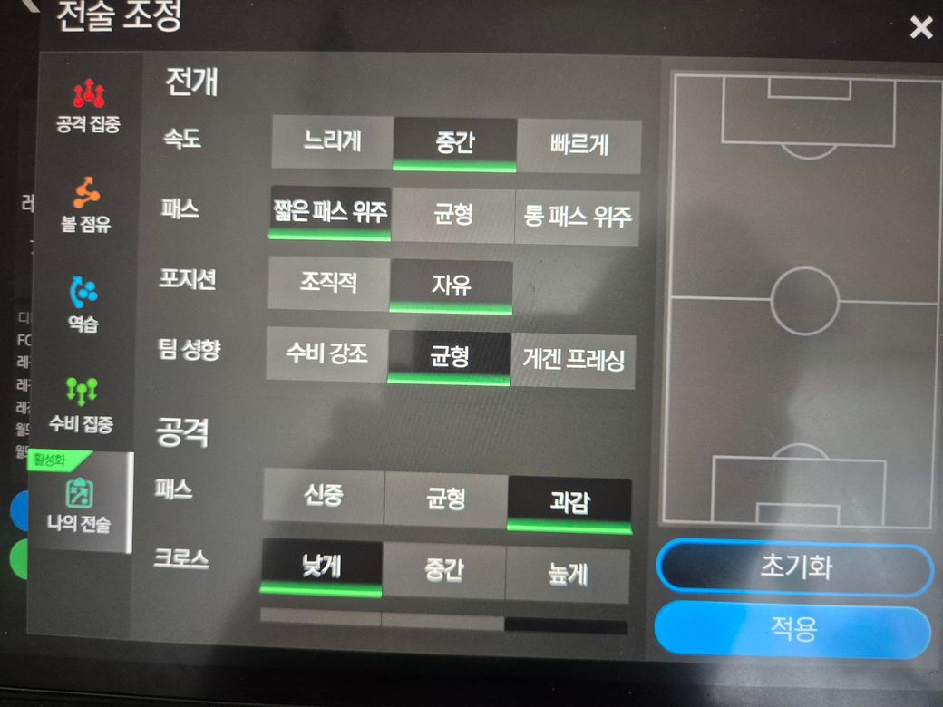 FC모바일 하시는분~~ 나의 전술 수치 조정해주실분!