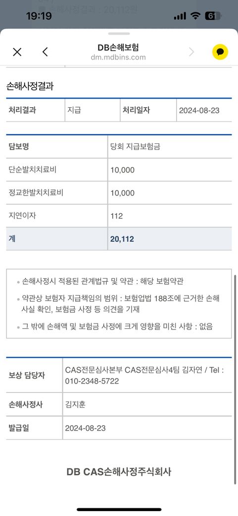 해당 부분에 대해서 보험금 지급된 것에 대해 불복하고 담당자랑 통화를 한 후 재 지급 해 달라고 해 보시거나