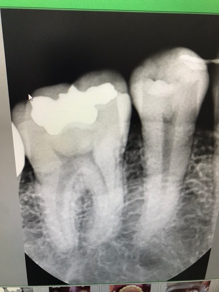 해당 사진만으로는 말씀하신 부분에 대해 정확히 알 수 없습니다. 사진은 2차원적이며 임상 검사 등을 같이 해보아야 합니다. 지속적으로 잇몸 및 치아 통증이 있다면 치과 방문 후 해당 치아에 대한 다각도적인 검사를 해보셔야 합니다.