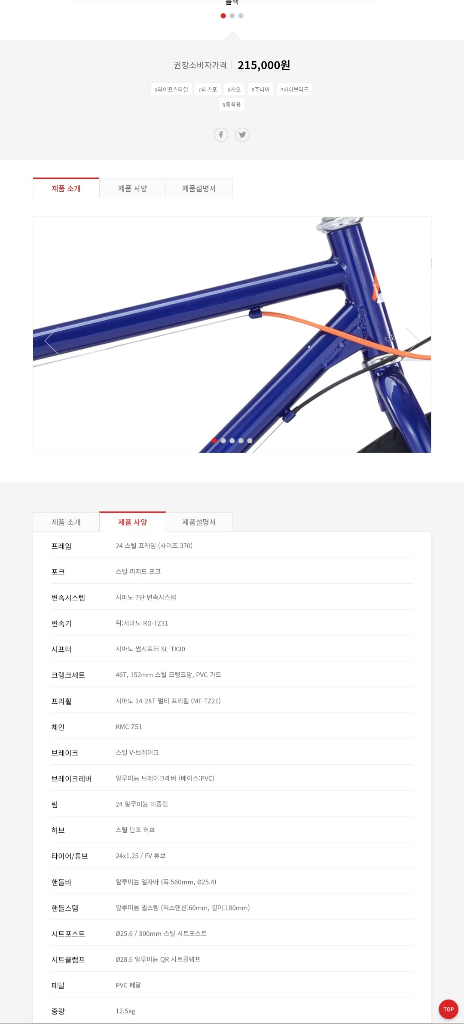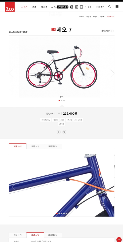 아래에는 자전거 스펙 첨부했습니다.