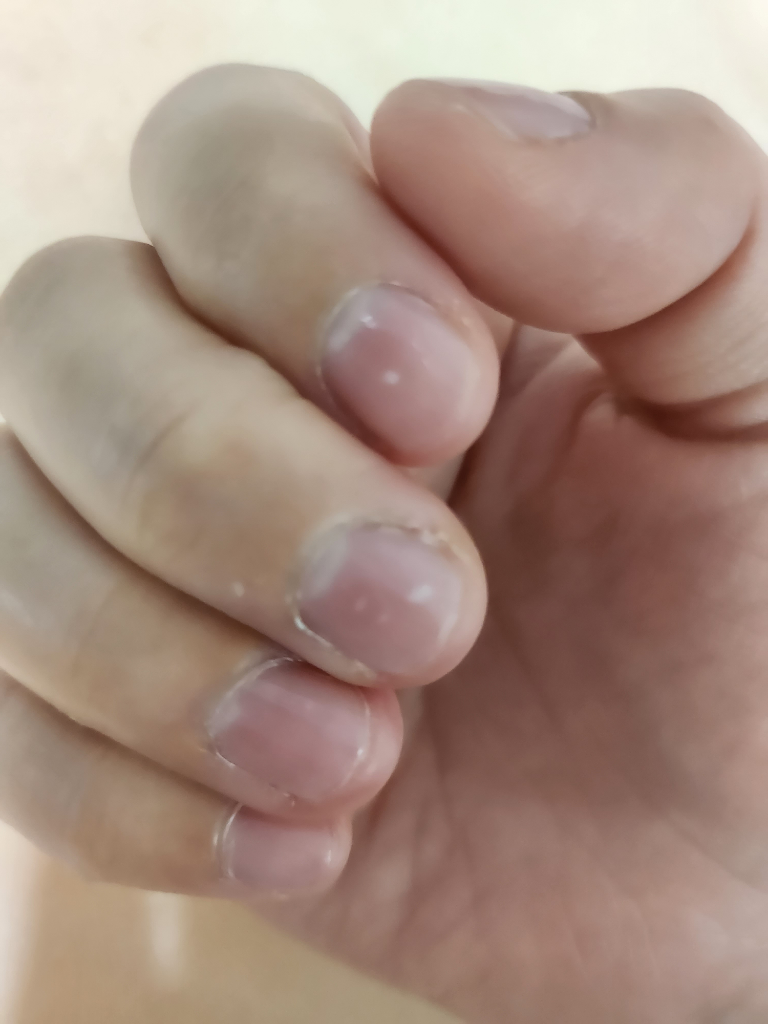 사진의 소견만으로는 구체적인 원인까지 파악할 수는 없지만 일반적으로 손톱에 생기는 병변은 비타민 등의 영양소 결핍에 의해서 발생하는 증상입니다. 충분한 영양 섭취 및 휴식 그리고 건강 관리를 해주면서 경과를 지켜보시길 권고 드리며 혹시라도 증상이 계속 지속된다면 피부과적으로 진료를 받아보는 것이 좋겠습니다.