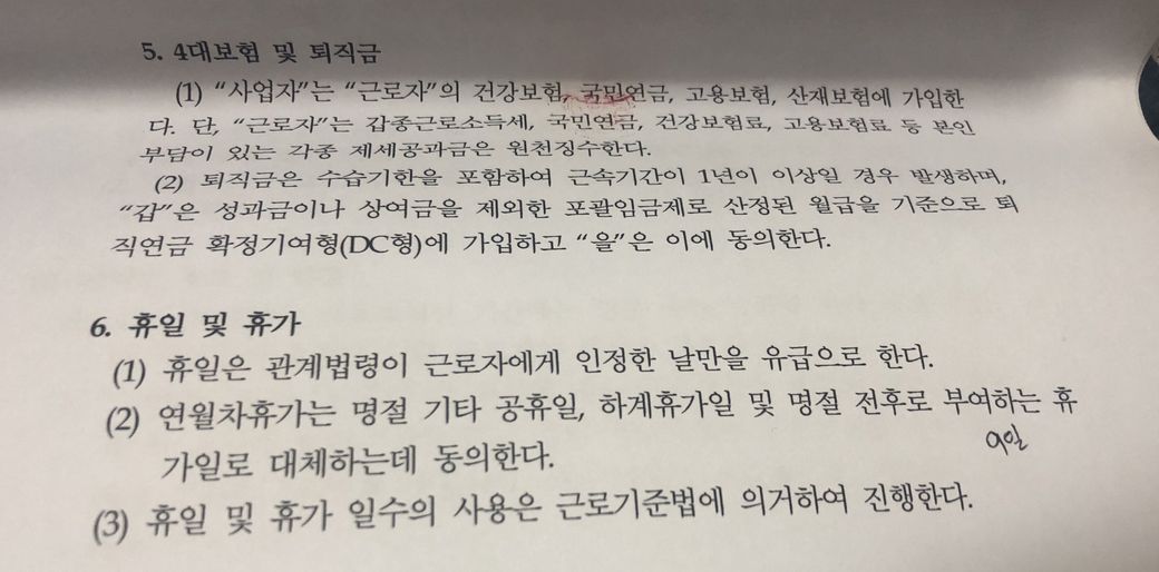 3.연차휴가대체에 대한 내용은 별도의 서면합의가 있어야 합니다. 근로계약서로 할 수 없습니다. 근로기준법 제62조의 내용으로 근로자과반수로 선임한 근로자대표와 사용자가 서면합의해야 합니다. 연차휴가대체합의서를 별도 작성해야 합니다. 참고하세요.