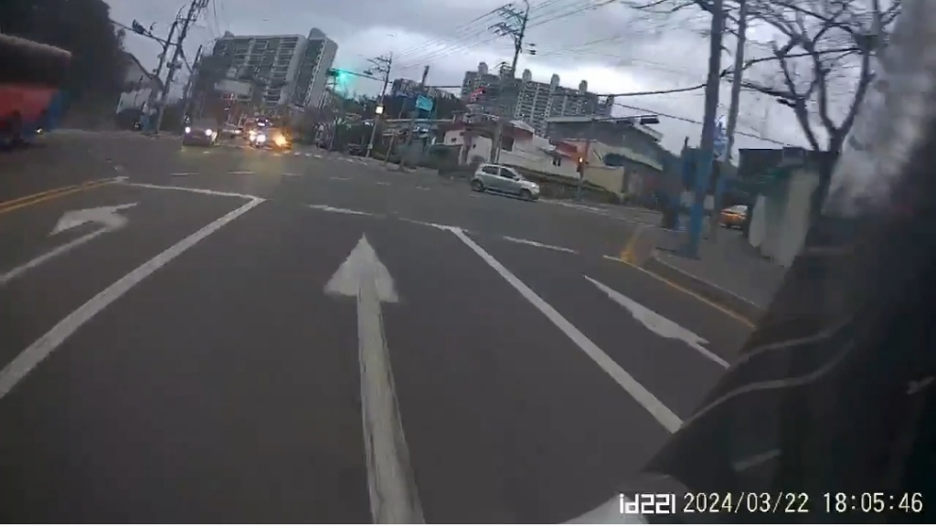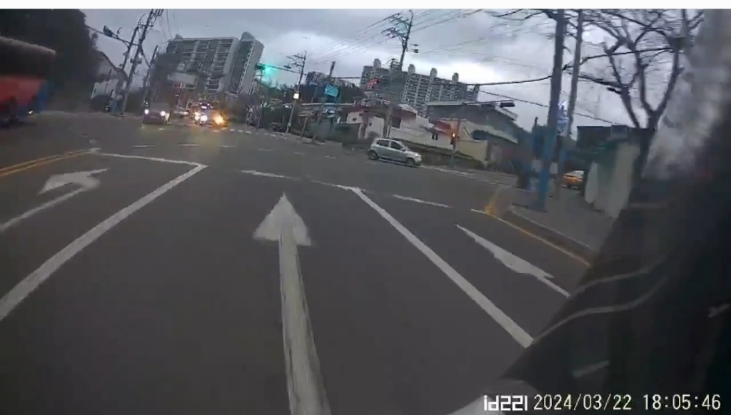 비 보호 좌회전 차량과 신호 직진 차량이 사고가 나면 기본 과실이 90 : 10 입니다.