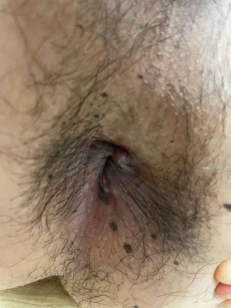 점은 그냥 점이라고 생각되고, 항문 상태는 치핵이 있는 것으로 보이며 외치핵이 겉으로 보입니다. 안쪽으로 내치핵이 동반되었는지는 진찰이 필요하지만 아마도 있을 것으로 예상이 됩니다.