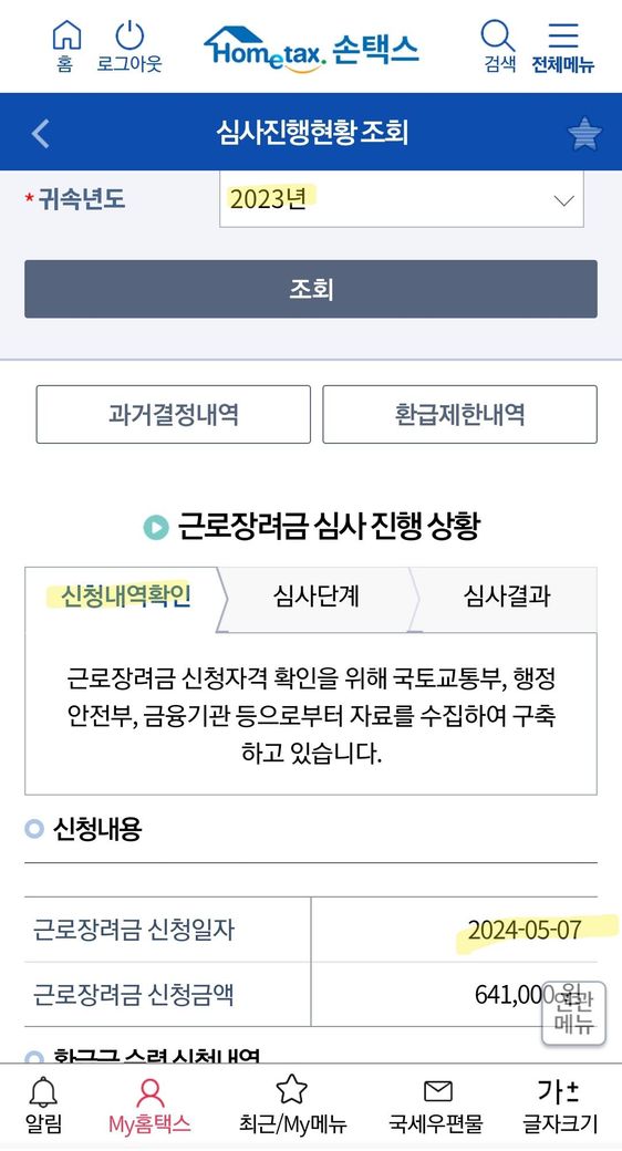 2023년귀속을 올해 5월 7일에 신청했는데