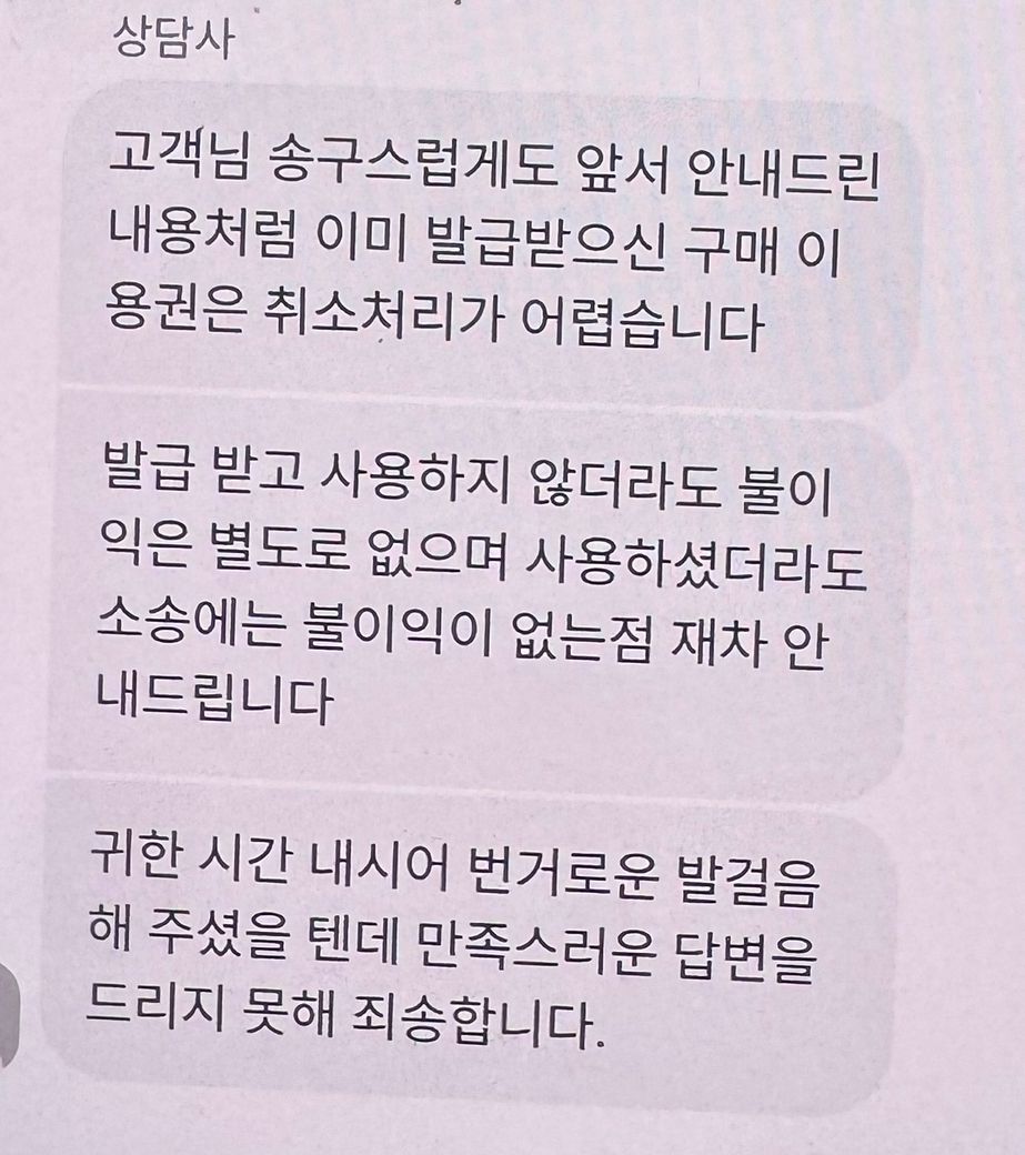 문의했는데 참 딱봐도 정해진 대답만 하네요 ㅈㄴ화나게 엄마가 단체소송 참여할 수 있다고 쿠폰 쓰지말라했는데 제가 쿠폰을 받아버려서 쿠팡 쇼핑 5천원 쿠팡이츠 5천원 이렇게 받았어요. 하지만 사용은 안했는데 이게