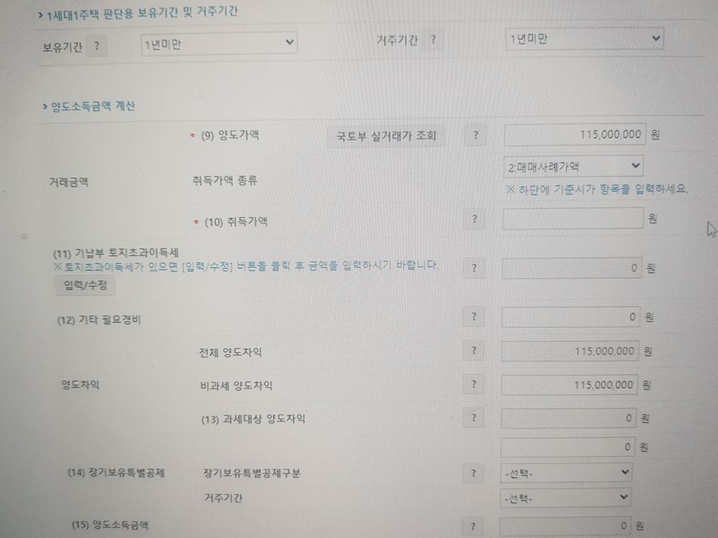 상속주택 홈텍스 양도세신고 궁금한점이