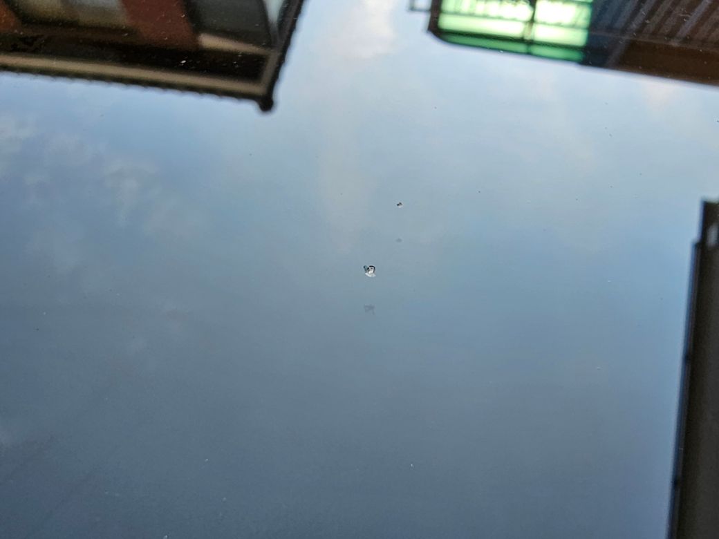 사진에서 보다시피, 주말에 세차하다가 앞유리에 자세히봐야 보이는 돌빵이 있더라고요.