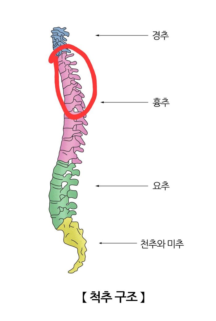 등쪽 척추-갈비뼈 사이 통증은 자세 문제(라운드숄더.거북목.척추측만증)로 인한 근육.관절 긴장일 가능성이 큽니다.