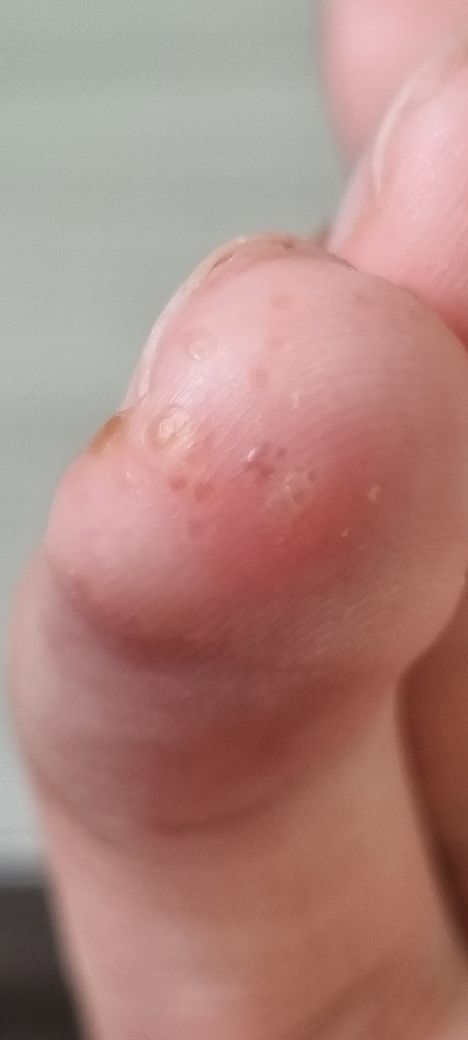 약지 손가락 끝에 수포가 생겨요. 노란색인것도 몇개 있고, 한 3주간격으로 생겼다가 없어졌다 반복합니다. 한 1주일이면 그냥 없어지는것같고, 아프거나 간지럽진 않아요.