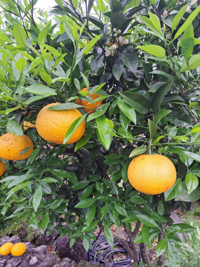 제주도에는 귤의 종류가 많습니다. 사진으로는 알기는 어렵지만, 이 정도 크기의 귤은 레드향, 황금향, 천혜향 등이 있습니다. 이런 귤들은 한라봉과 귤을 교배하거나 오렌지와 귤을 교배하여 만들어집니다.