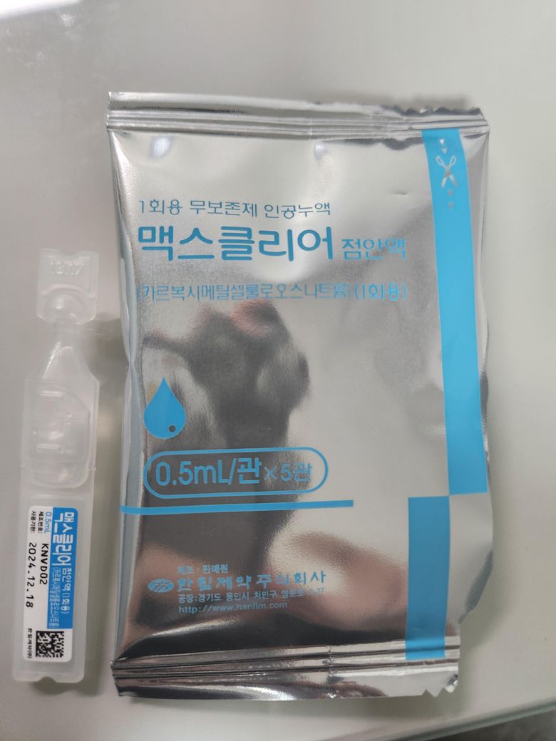 검색하보니깐 사람용 인공눈물을 조금 사용해봐도 된다고 나오는데 맥스클리어 인공눈물 사용 괜찮을까요? 1회용 무보존제 인공누액이라고 적혀있기는 합니다.