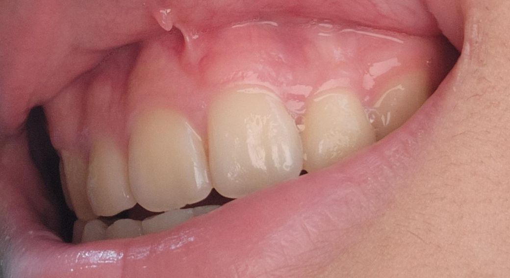 사진으로 봤을 경우에는 크게 문제가 되는 것으로 보이지는 않습니다. 잇몸은 부분적으로 어두운 색을 띠거나 밝은색을 띨 수 있습니다.
