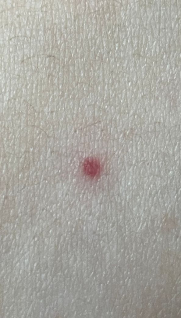 제목대로 자고 일어났더니 빨간 점이 약간 코딱지 크기?로 생겼는데 좀 따끔따끔 거리는데 이거 혹시 뭐에 물린 걸까요? 아니면 몸에 문제라도 있는 건가요?