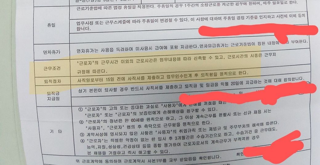 제가 서명한건 사직 15일이전 말하는 근로계약서인데요