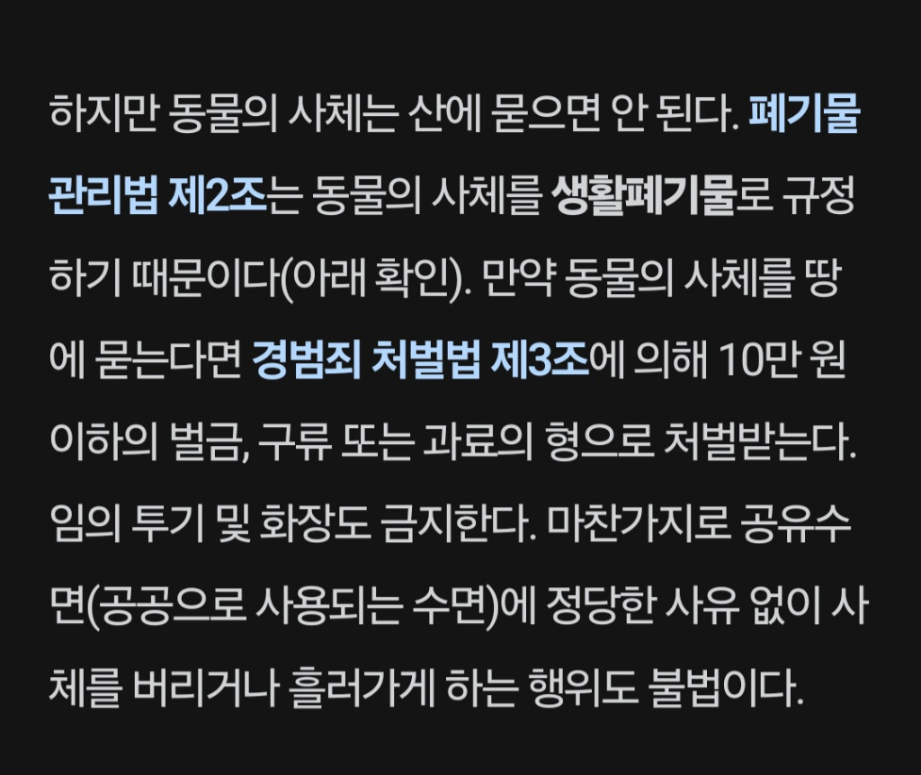 근처 뒷산이나 그런곳이 묻어주는게 좋을듯 합니다