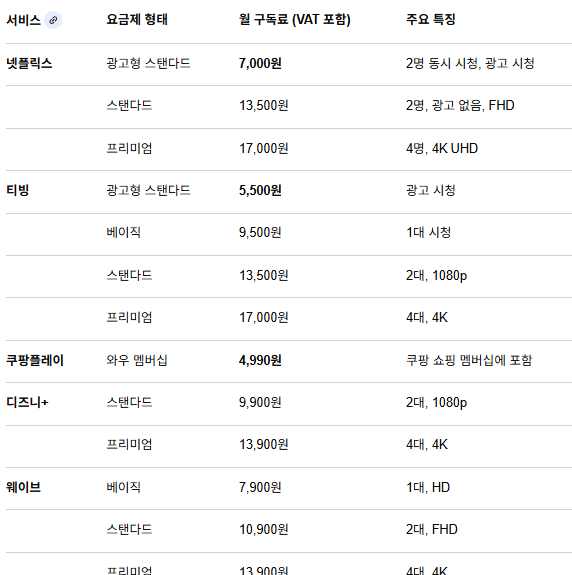 요즘 OTT 구독료를 너무 많이 쓰고 있나 싶어서 줄일까 하는데 순위와 비용 궁금합니다.