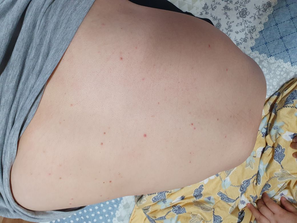 등을 보니 뭐가 나있고, 난지는 좀 된거 같습니다. 그리고 모기 물린거 보다는 덜 하지만
