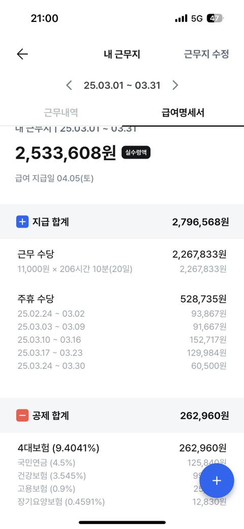 받은 월급과 제가 계산한 금액이 달라수 질문