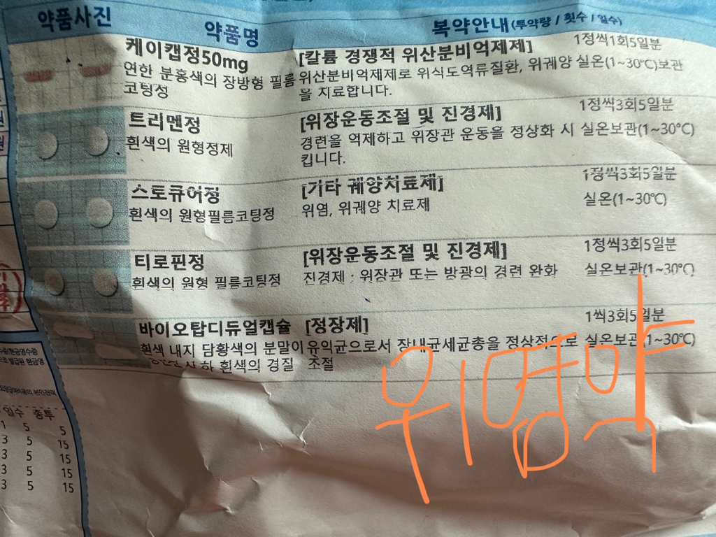 위염약 < 케이캡정 / 트리멘 정 / 스토큐어정 / 티로핀정 / 바이오탑디듀얼캡슐>을