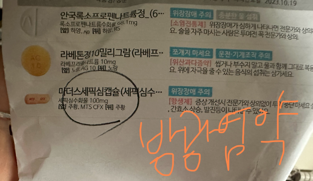 방광염약 <록소프로펜정 / 라베톤정 / 세픽심캡슐>을 복용하시고