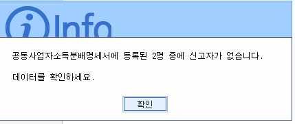 이렇게 나오는데 뭐가 문제인걸까요?????제가 공동사업장은 처음 기장을 맡아 신고를 진행하고 있는중이여서 문의드립니다ㅜㅜ