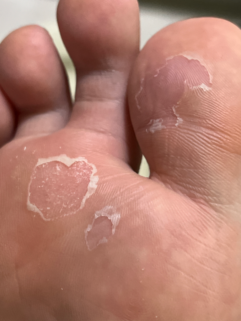 병변의 모양새는 무좀의 가능성도 고려해야 할 것이라 보입니다. 가까운 피부과에서 현미경 검사나 배양검사로 확진할 수 있을테니 검사가 필요한지를 진찰받아보시기 바랍니다.