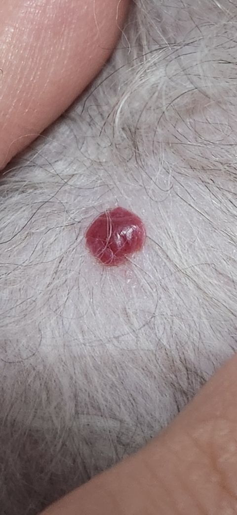 다른 동물병원에 데려가서 진료 받으시기 바랍니다. 단순 혈종으로 보기에는 붉은색이 너무 선명하여 일반사항이 아니고 1년정도 기간동안 유지되고 커진다면 종양 가능성을 높게 두어야 합니다.