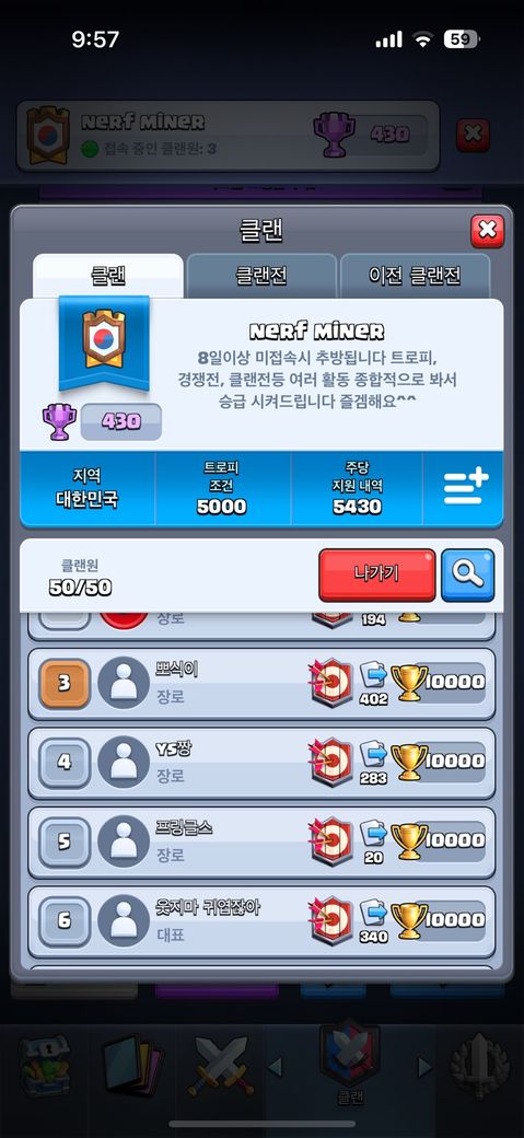 클래시로얄 클랜 내 순위는 단순히 개인 트로피 수치만으로 결정되지 않습니다. 기본적으로 트로피가 높을 수록 순위가 높지만, 시즌 시작 후 보너스 트로피, 클랜전 참여, 활동량 등도 반영되면서 실제 순위가 트로피 순서와 일치하지 않을 수 있습니다. 따라서 10000점 이상 유저라도 클랜 내부에서 1등부터 순위가 무작위로 보이는 경우가 생기는데 이는 게임 내부 알고리즘으로 활동과 시즌 점수까지 고려하기 때문입니다