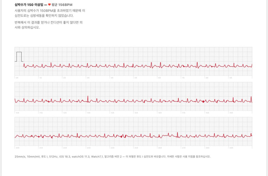심장이 너무 빨리 뛰어서 애플워치로 심전도 찍었는데 분석해주세요 ㅠㅠ