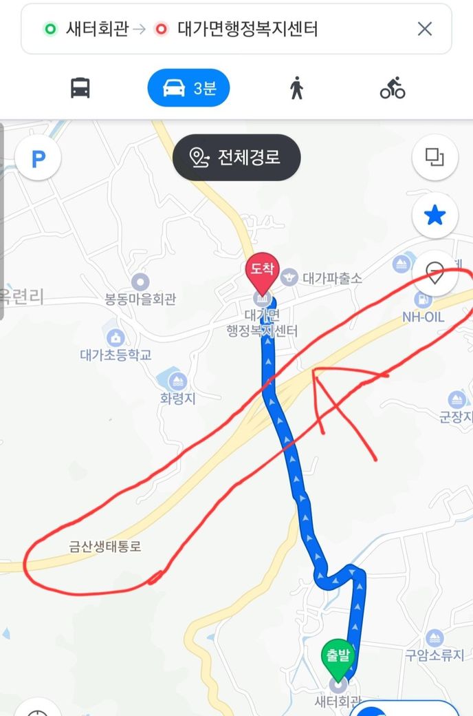 금산생태통로 부근같은데 원래는 산길 또는 비포장 구간 이였어요