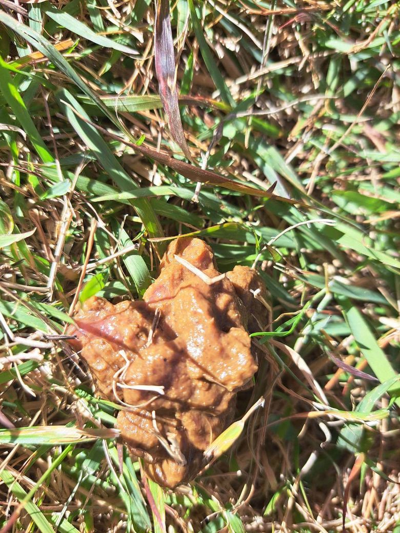 대변에 분홍색이 섞여있는데, 살점이 짓눌려 있는 느낌입니다.
